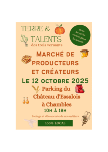 Le dimanche 12 octobre 2025, nous aurons un stand de dégustation et vente de notre SAT au Marché des Producteurs et Créateurs de Chambles.
